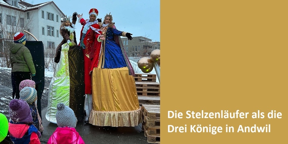 Für den Auftritt der besonderen Art sorgte um rund 16 Uhr das Eintreffen der Heiligen Drei Könige auf Stelzen. Der König in Begleitung seiner zwei Königinnen verzauberten Jung und Alt. Nebst dem Verteilen der königlichen Brötchen liessen die Stelzenläufer Besucherinnen und Besucher nach den Sternen greifen und händigten für das neue Jahr ein Stück Sternenglück in Form von Schokolade aus. Kronen und Sternen geformt aus Ballons liessen die Augen der kleinsten Gäste aufleuchten.