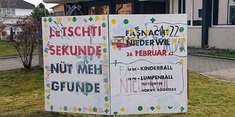 Am Samstag, 26. Februar 2022, findet in der Mehrzweckhalle Niederwil um 14:00 Uhr der Kindermaskenball und ab 19:00 Uhr der Lumpenball unter dem Motto "Letschti Sekunde nüt meh gfunde" statt.