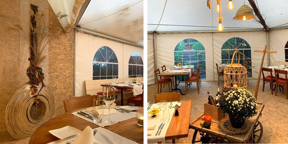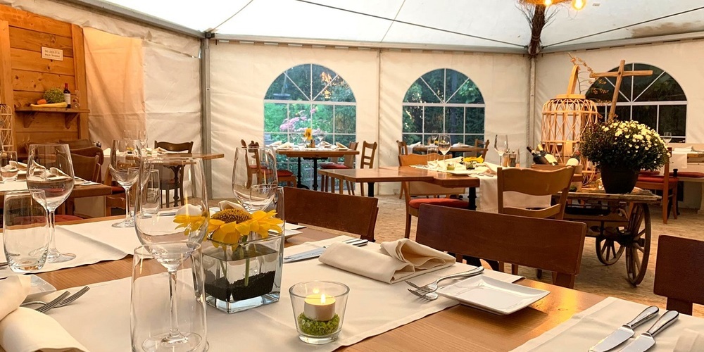 Wo sonst das Gartenrestaurant die Gäste erfreut, lädt jetzt das Herbststübli ein zum Genuss. Bild: zVg.1 / 2