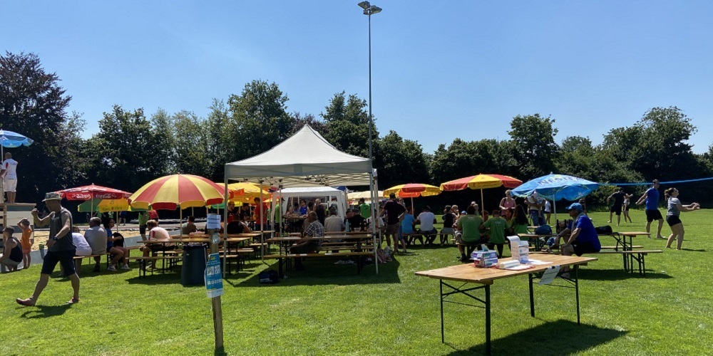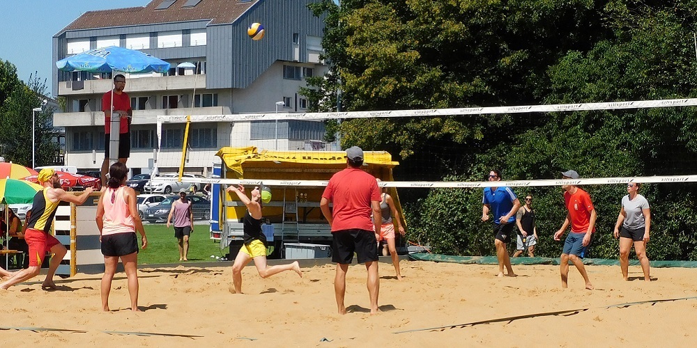 Was die Wetterschmöcker schon die ganze Woche prophezeit hatten, trat schlussendlich am Samstag auch ein: Prächtiges Sommerwetter. In einer 7er- und einer 6er-Gruppe duellierten sich Teams aus Niederwil und aus der Umgebung in spannenden Spielen und auf ansehnlichem Niveau. Die Beachvolleyballer/innen spielten von Anfang an Vollgas, während die Festwirtschaft am Morgen früh nur wenig zu tun hatte. Zusammen mit den Gästen und den Wettkämpfern/innen des „Schnellsten Niederwilers/in“ füllte sich diese gegen Mittag und es mussten zusätzliche Sitzgelegenheiten herangeschafft werden. Nachmittags waren dann auch die Schattenplätze rundherum belegt und vor allem die Kinder kühlten sich im Pool ab.