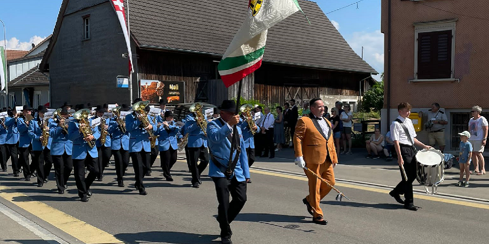 Am Vormittag nahm die Musikgesellschaft Niederwil am Wettspiel mit stiller Bewertung teil. Gespielt wurde das Stück «Calling Cornwall», welches von Goff Richards komponiert worden ist. Nach einer positiven Rückmeldung der Juroren begaben sich die Musikanten und Musikantinnen ins Festzelt, wo schon bald das Mittagessen (Fleischvogel, Kartoffelstock, Bohnen und Cremeschnitte) wartete.