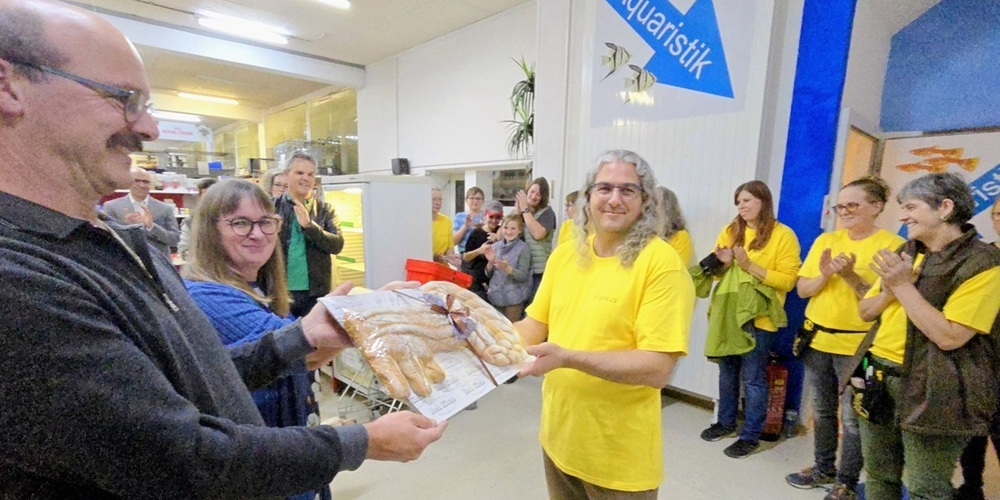 Martin und Marlen Zäch, die Zoo-Shop-Vorgänger überreichten Martin Zäch symbolisch den Schlüssel zu seinem neuen Reich, der TierOase in Gossau.
