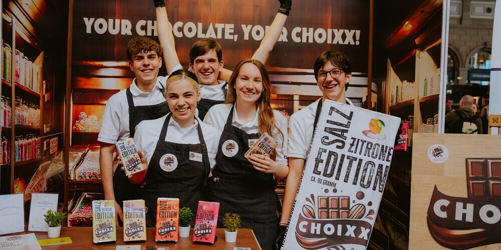 Um die Jury von ihrer Geschäftsidee zu überzeugen, haben die Teams während zwei Tagen ihre Produkte und Dienstleistungen an ihren Ständen verkauft, Interviews mit Fachpersonen geführt sowie Bühnenpräsentationen gehalten. Mit ihren handgemachten Schokoladenkreationen, einem sehr guten Businessplan und einer ausgeklügelten Marketingstrategie haben die Schüler/-innen von «Choixx» die Jury überzeugt.