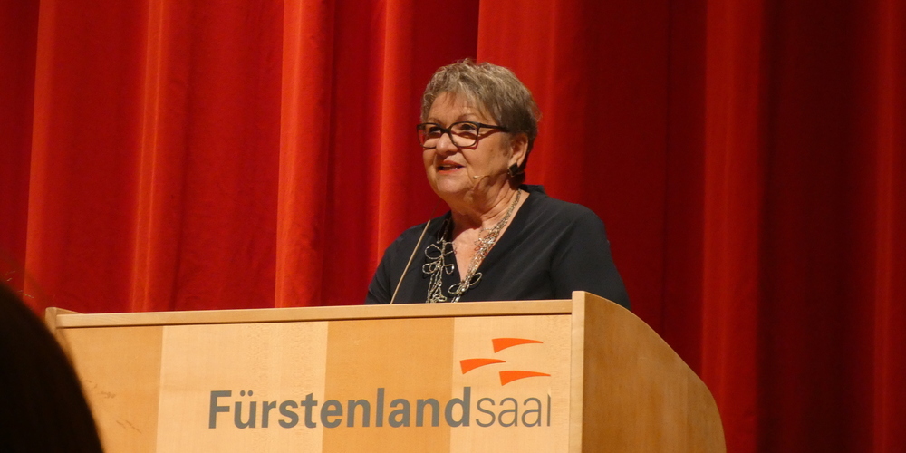Auf eine klassische Laudatio wurde an diesem Abend bewusst verzichtet. Die Preisträgerin hatte es so gewünscht. Stattdessen führte Mona Vetsch, welche die Preisträgerin seit vielen Jahren kennt, gewohnt frisch und sympathisch durch den Abend. Sie sagte zu Beginn, dass die Familie, Freunde, Weggefährten, Mitstreiterinnen und Verbündeten aus den verschiedensten Projekten alle eine eigene Geschichte mit Brigitte Hollenstein-Gemperle hätten – und all diese Fäden habe die Preisträgerin zu einem Stoff, zu einem Ganzen, zu einem Netzwerk verwoben.