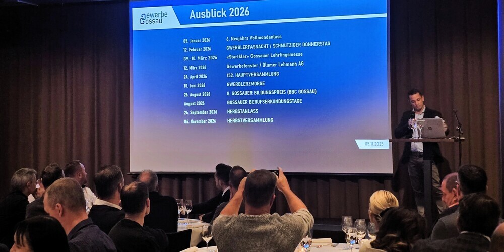 Rund 120 Mitglieder und Gäste nahmen am 5. November an der diesjährigen Herbstversammlung des Gewerbevereins Gossau im Werk 1 teil. Nach der Begrüssung durch Präsident Remo Schönenberger folgte ein abwechslungsreicher Abend mit spannenden Programmpunkten und kulinarischen Highlights. Zudem konnten sechs neue Mitglieder willkommen geheissen werden.
