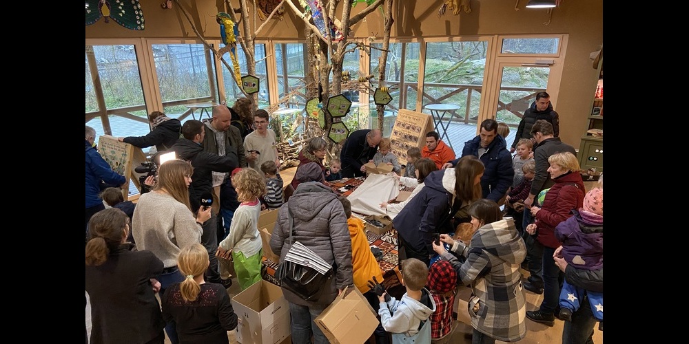 Kinder dürfen die Geschenke in der Raubtierarena platzieren: