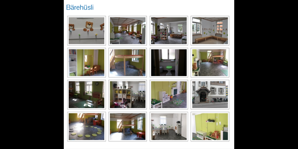 Die Spielgruppe Bärehüsli (www.spielgruppe-gossau.ch) führt drei Sparten: Innen, Wald und Spielplatz.