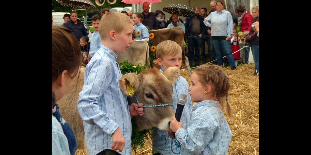 Die Freude an den Tieren widerspiegelte sich auch in den lachenden Gesichter der jungen Generation. Neben der Wahl der schönsten und besten Rinder in verschiedenen Bewertungskategorien war auch Zeit für Verpflegung und Gespräche im Festzelt.