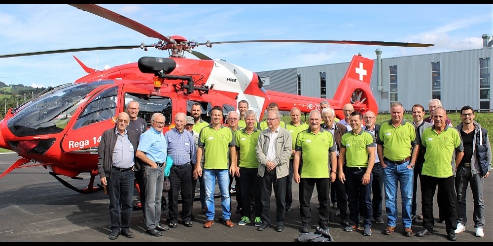 Im Anschluss an den geschäftlichen Teil der HV boten die Organisatoren zwei spannende Möglichkeiten für das weitere Zusammensein an. Wer lieber die Braukunst kennen lernen und die entsprechenden Produkte geniessen wollte, hatte vor Ort diese Gelegenheit. Eine aus organisatorischen Gründen beschränkte Anzahl von 26 Teilnehmenden verschob sich nach St.Gallen und lernte die Rettungsorganisation REGA näher kennen. Der Zufall wollte es, dass der ehemalige Kommandant der Appenzeller Grenadier Kompagnie Thomas Holdener die Führung übernahm. Als Mitglied des Stiftungsrates und vielseitiger Einsatzleiter bei Rettungseinsätzen vermittelte er den Besuchern seine fundierten Kenntnisse. Die REGA wurde 1952 gegründet und hat heute vierzehn Standorte, 375 Mitarbeitende und eine Flotte von 19 Helikoptern und zwei Ambulanzflugzeugen. Rund 3,5 Millionen Gönner tragen zur Wirtschaftlichkeit des Unternehmens bei. Seit drei Monaten besitzt die Basis St.Gallen den neuen REGA-Rettungshelikopter H145. Der Führer stellte ihn vor.