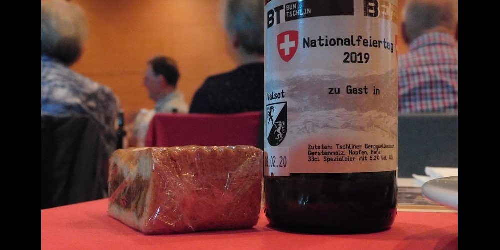 (JG) Gleich zwei Feuerwerke durften die Gossauerinnen und Gossauer am Mittwoch, 31. Juli 2019, anlässlich der Bundesfeiern der Stadt Gossau und des BBC geniessen. Ein besonderes Highlight war der Besuch der Unterengadiner Gemeinde Valsot, welche mit Ihren Auftritten - und dem mitgebrachten Geschenk (im Titelbild) - ebenso zu begeistern wusste wie der Bündner Moderator Flurin Caviezel, der durch den äusserst gelungenen Abend im Fürstenlandsaal führte.