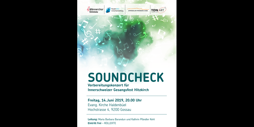 Die vier Chöre treffen sich am Vorabend Freitag, 14. Juni 2019, zur letzten Vorbereitung und zum „Soundcheck“ in der Evangelischen Kirche auf dem Haldenbüel in Gossau. Ab 20 Uhr findet ein öffentliches Vorbereitungskonzert statt, bei dem die vier Chöre vor hoffentlich zahlreichem Publikum ihre „Wettkampf-Programm“ singen. Das Vorbereitungskonzert ist öffentlich, der Eintritt frei (Kollekte).