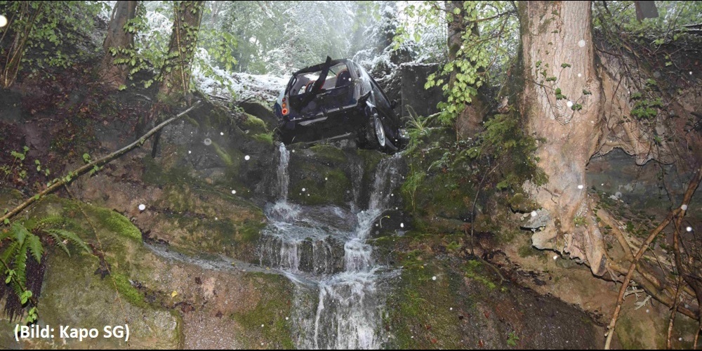 Der 43-Jährige fuhr mit seinem Auto in Richtung Bernhardzell. Auf der schneebedeckten Strasse verlor er die Kontrolle über sein Auto. Dabei fuhr er über den rechten Strassenrand hinaus und rutschte eine steile Böschung hinunter. Dabei überschlug es das Auto und kam schlussendlich auf den Rädern, im Bachbett des Giessbachs, zum Stillstand. Der 43-jährige konnte sein Auto selber verlassen. Er wurde durch einen Rettungswagen mit unbestimmten Verletzungen ins Spital gebracht. Durch den Unfall entstand ein Sachschaden von mehreren tausend Franken.