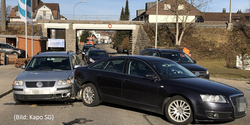 (Kapo SG) Am Dienstag, 26. Februar 2019, kurz nach 15:25 Uhr, ist auf der Flawilerstrasse in Gossau das Auto eines 57-jährigen Mannes in das Auto eines 33-jährigen Mannes geprallt, als beide Autos abbiegen wollten. Der 33-jährige Autofahrer wurde eher leicht verletzt.