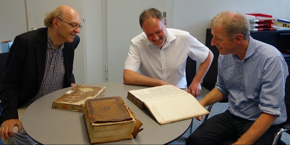Der Gossauer Historiker Karl Schmuki steigt regelmässig in die Archivräume der Stadt Gossau, wenn er für Publikationen zur Gossauer Geschichte recherchiert. Dabei hat er die drei eher unscheinbaren alten und leicht ramponierten Bücher entdeckt. Es handelt sich um ein Schuld-, ein Gant- und ein Gerichtsprotokoll. Alle drei Bände stehen im Zusammenhang mit dem Oberberger Amt, sozusagen der lokalen Verwaltung des Fürstabtes im Kloster St. Gallen.