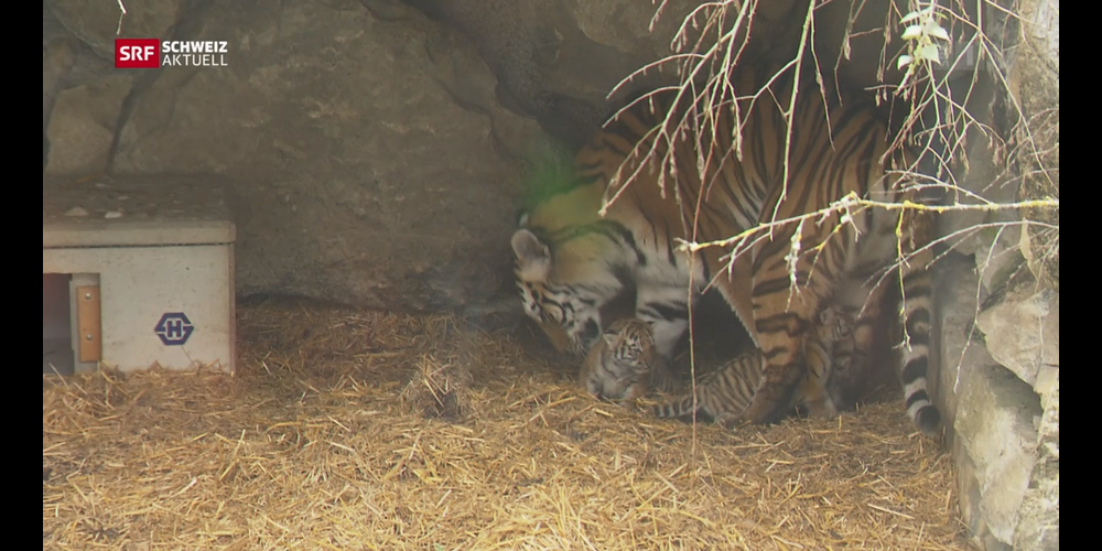Die drei sibirischen Tiger-Babies, die vor einem Monat im Walter-Zoo Gossau auf die Welt gekommen waren, durften zum ersten Mal das Gehege verlassen. Ein erster Medizincheck durch Zoo-Direktorin und Tierärztin Karin Federer war angesagt. Mit dabei auch das Schweizer Fernsehen, welches in der Sendung "Schweiz aktuell" darüber berichtete. - Und jetzt wissen wir: Es sind zwei Männchen und ein Weibchen und alle drei "Tigerli" sind bei bester Gesundheit.