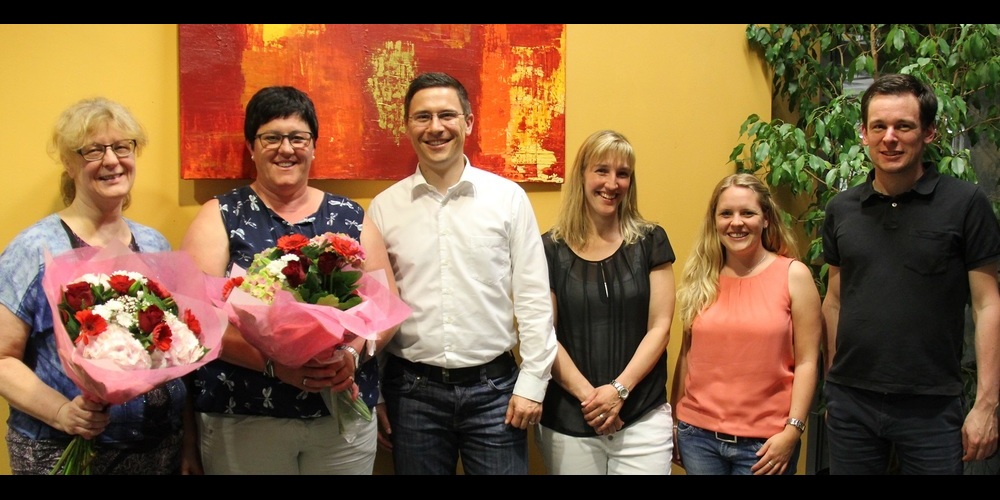 Im Titelbild v.l. Uschi Rischatsch, Heinz Zeller, Waltraud Wüthrich, Ursula Forster, Ursula Weratschnig, Norbert Hug und Mary Gemperle.