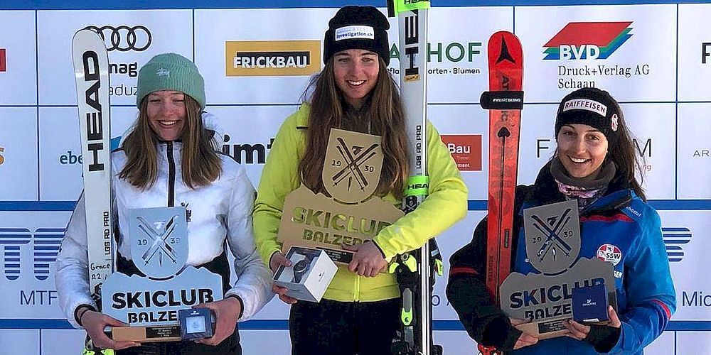 In Malbun starteten die Athleten mit Jahrgang 2004-2006 an einem Interregio Ost Rennen. Im Riesenslalom holte sich Grace Anderes ( Jg. 2005, links im Bild) den ausgezeichneten zweiten Rang.