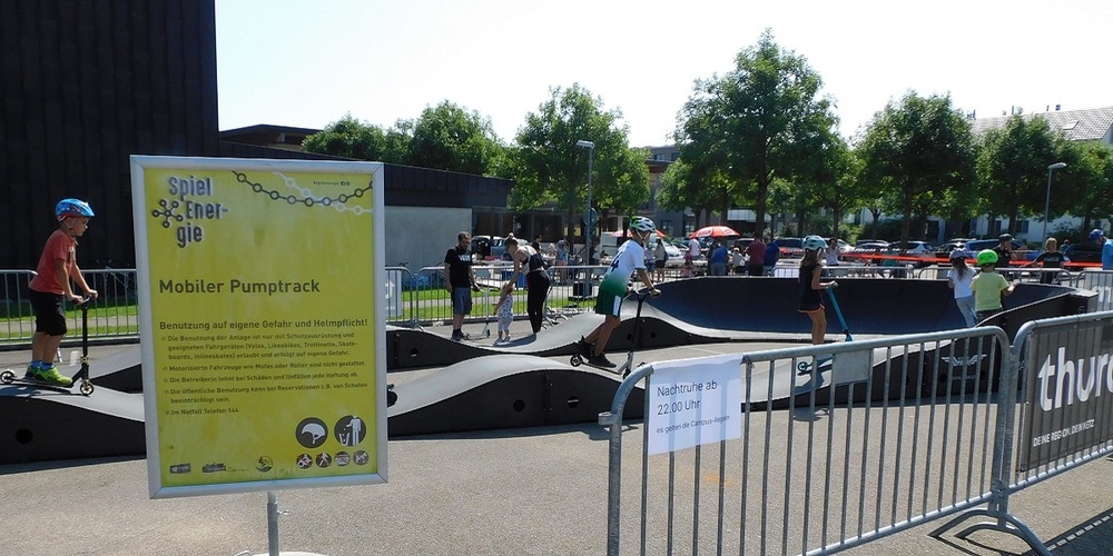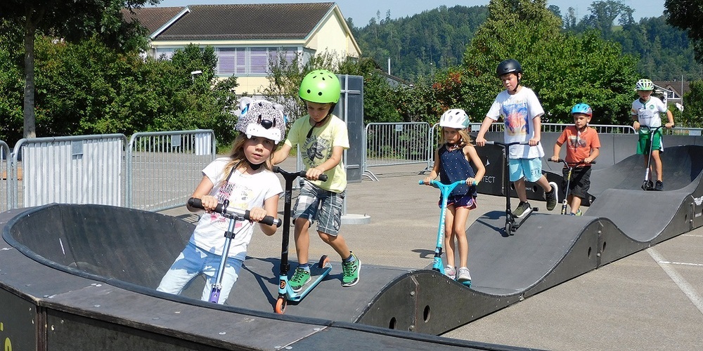Der Pumptrack darf mit Velos, Skate- und Kickboards sowie Rollschuhen befahren werden. Hier Runden zu drehen ist Bewegung mit hohem Spassfaktor und eine Herausforderung für die Koordinationsfähigkeit. Dies fördert die Geschicklichkeit im Umgang mit diversen Rollgeräten und erhöht auch die Sicherheit beim Fahren im Strassenverkehr.