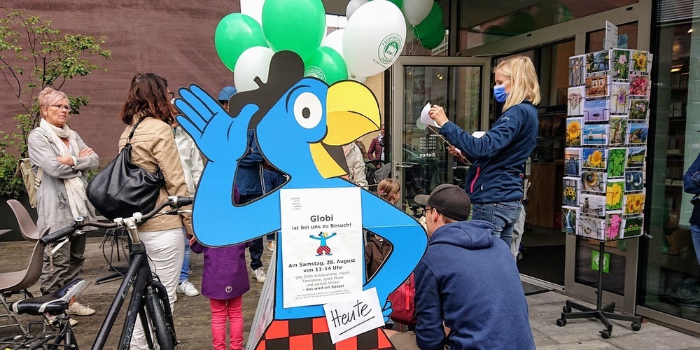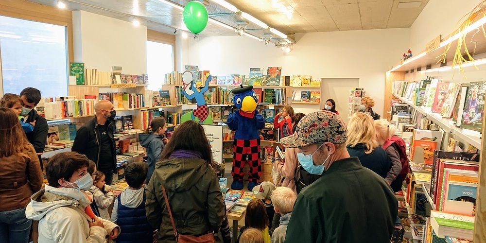 In der Gutenberg Buchhandlung konnte man mit Globi singen.