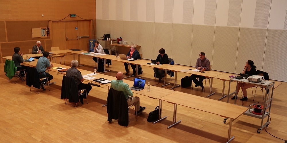Der Schulrat Gossau hat sich anfangs Mai zur ersten Sitzung unter Corona-Bedingungen getroffen – im vorderen Teil des Fürstenlandsaales am grossen Tisch mit gebührendem Corona-Abstand.
