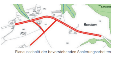 Am Montag, 31. Mai 2021, beginnt die Toldo Strassen- und Tiefbau AG, Wil mit den Bauarbeiten für die Strassensanierung der Oberbürer-Niederwilerstrasse (2. Etappe, ab Rüti bis Buec...