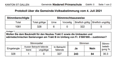 Die Stimmbürgerinnen und Stimmbürger der Gemeinde Oberbüren haben am 4. Juli mit 74% Ja-Stimmen einen Baukredit in der Höhe von 5,5 Mio. Franken bewilligt. Dieser wird für Sanierun...