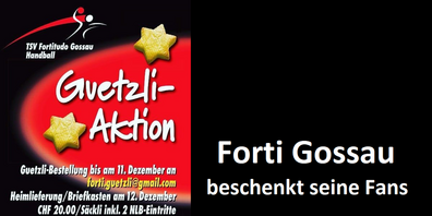 Das NLB-Team von Forti Gossau startet eine grosse Advents-Guetzli-Aktion. Jedes Guetzli-Säckli wird von Spielern gebacken. Zusätzlich verstecken sich darin Preise wie Trikots, Sa...
