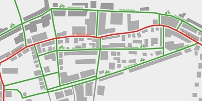 Weil viel befahrene Strassen, wie beispielsweise die St.Gallerstrasse, gefährlich sind, fahren Velofahrerinnen und Velofahrer zunehmend auf Trottoirs. Es gibt Alternativrouten und ...