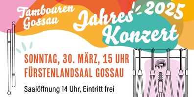 Am Sonntag, 30. März 2025, um 15:00 Uhr geht im Fürstenlandsaal Gossau das traditionelle Jahreskonzert der Tambouren Gossau über die Bühne. Der Aktivverein und die Jungtambouren p...