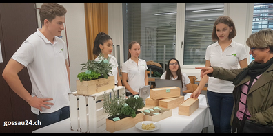 Anlässlich des Tags der offenen Tür im Gymnasium Friedberg, Gossau, stellten zwei Miniunternehmen aus Schülern der Vierten Klasse mit Schwerpunktfach "Wirtschaft und Recht" (Lehrer...