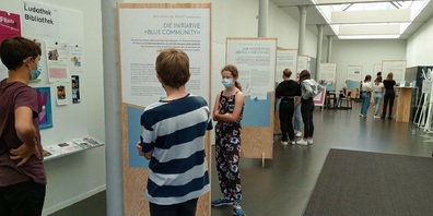 Drei Klassen aus der zweiten Oberstufe des OZ Rosenau haben die aktuelle Ausstellung «Wasser – ein Menschenrecht» im Foyer der Stadtbibliothek Gossau besucht.