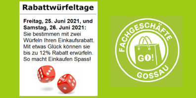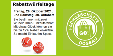 Nutzen Sie diese Gelegenheit! Auf spielerische Weise können sich einen Rabatt von zwei bis 12 Prozent erwürfeln. Einkaufen bei den Fachgeschäften Gossau macht Spass! Würfeln Sie mit.