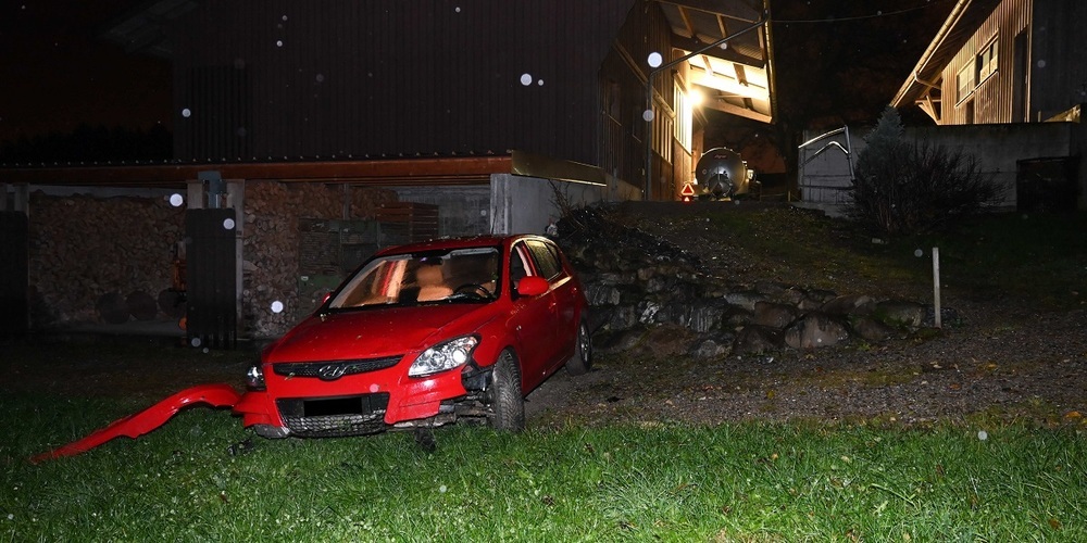 Ein 23-Jähriger fuhr in seinem Auto auf der Bischofszellerstrasse von Arnegg Richtung Hauptwil. In der Linkskurve, Höhe Loch, fuhr der Mann geradeaus und über 160 Meter über das angrenzende Wiesland. Anschliessend hob das Auto ab und landete unterhalb einer kleinen Steinmauer auf einem Kiesplatz. Dort prallte es gegen einen abgestellten Anhänger sowie ein Metalltor, bevor es eine weitere kleine Steinmauer hinunterstürzte und dort zum Stillstand kam. Der 23-Jährige liess das Auto daraufhin zurück und verliess die Unfallörtlichkeit, ohne sich um den Schaden zu kümmern.