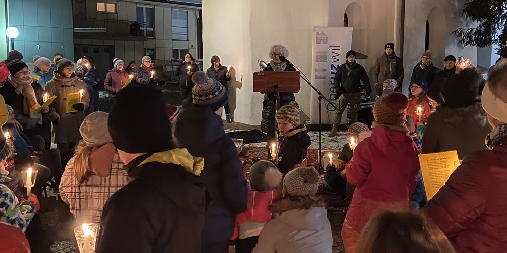 Das kalte Wetter und die Patina des bereits eingetroffenen ersten Schnees sorgten ebenso für einen stimmungsvollen Rahmen wie die imposanten Sterne aus Windlichtern, die Religionslehrerin Karin Angst mit ihren Schülerinnen und Schülern mit Bezug zur Caritas-Aktion «Eine Million Sterne» aufgestellt hatte. Dies in einem Lichtermeer von Handkerzen, die auch dieses Jahr - es war bereits das 19. Oberuzwiler Weihnachtssingen - von der Kulturkommission abgegeben wurden.