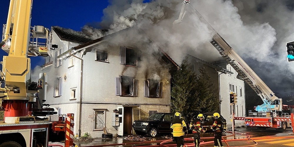 Die Rettungskräfte trafen vor Ort eine starke Rauchentwicklung sowie offenes Feuer an. Die zuständige Feuerwehr fing umgehend mit den Löscharbeiten an, welche zum Zeitpunkt der Berichterstattung noch andauern. Die beiden Bewohner, zwei Männer im Alter von 20 und 53 Jahren, konnten das Gebäude selbstständig verlassen, mussten aber mit Verdacht auf Rauchgasvergiftung durch den Rettungsdienst ins Spital gebracht werden. Das Gebäude ist nicht mehr bewohnbar. Der entstandene Sachschaden wird auf mehrere 100'000 Franken geschätzt.