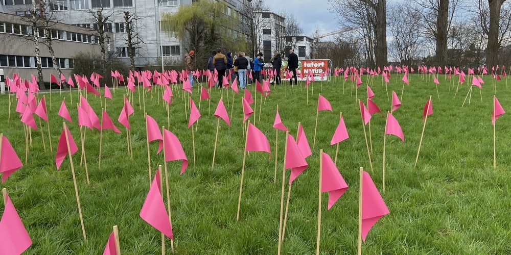 Nach der theoretischen Wissensvermittlung durch die drei beteiligten Organisationen und des Landwirtes Fredi Mosberger aus Gossau folgte der aktive Teil der "Littering-Fahnder" mit der Arbeit auf dem Feld. Die Jugendlichen haben den Abfall an der St.Gallerstrasse gesammelt, diesen protokolliert und mit auffälligen Fähnchen sichtbar visualisiert. Die Visualisierung des Litterings soll auch dazu dienen, die Öffentlichkeit zu sensibilisieren und auf die Problematik hinzuweisen.