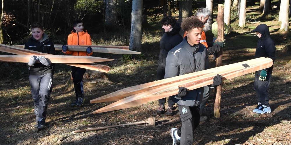 Statt im Schulhaus gibt es Unterricht im Wald. Die Wissensvermittlung über die Natur ist aber nur das eine. Lehrer Markus Benz unterstreicht, dass die Schüler bei dieser Aktion auch mit einem konkreten Beruf in Berührung kommen und eins zu eins erleben können, wie es künftig im Berufsalltag zu- und hergeht. Einsatz und Pünktlichkeit werden dabei gefordert sein. Und gearbeitet wird auch mit kalten Fingern – das spüren einige an diesem Vormittag trotz Sonne sehr wohl.