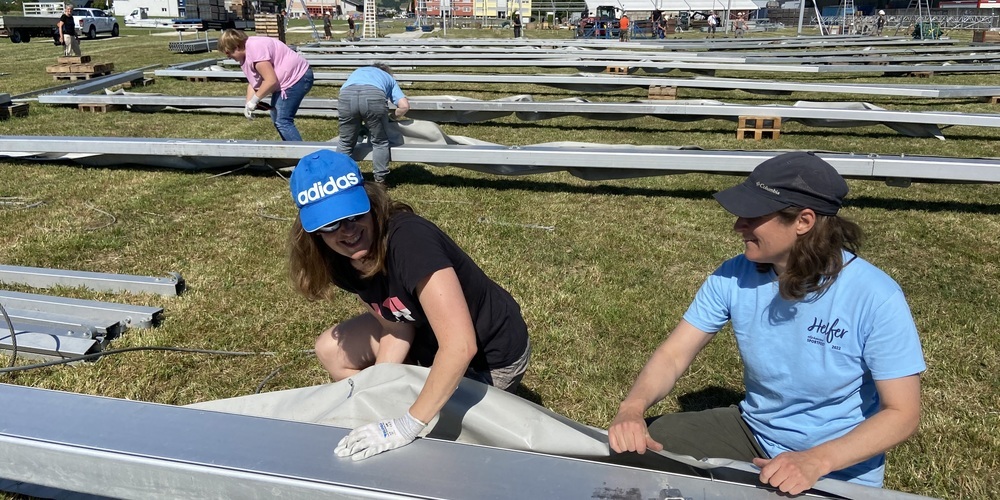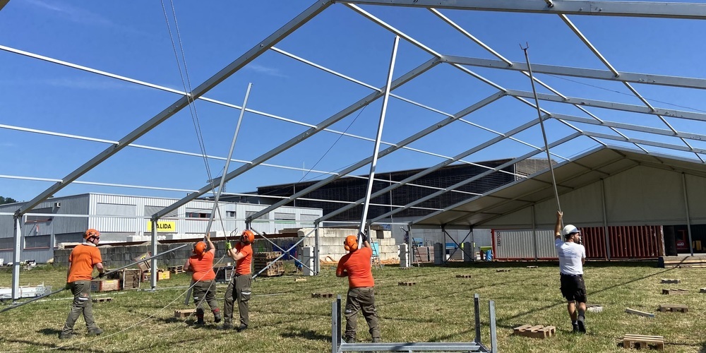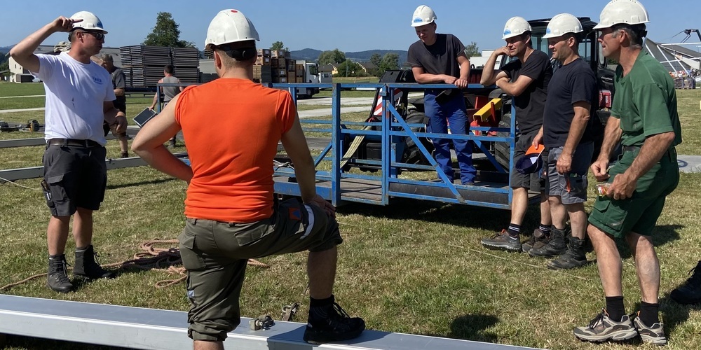 Fachkundige Leitung beim Zeltaufbau durch Pascal Mader (Inhaber Mader Festinventar AG, links im Bild).