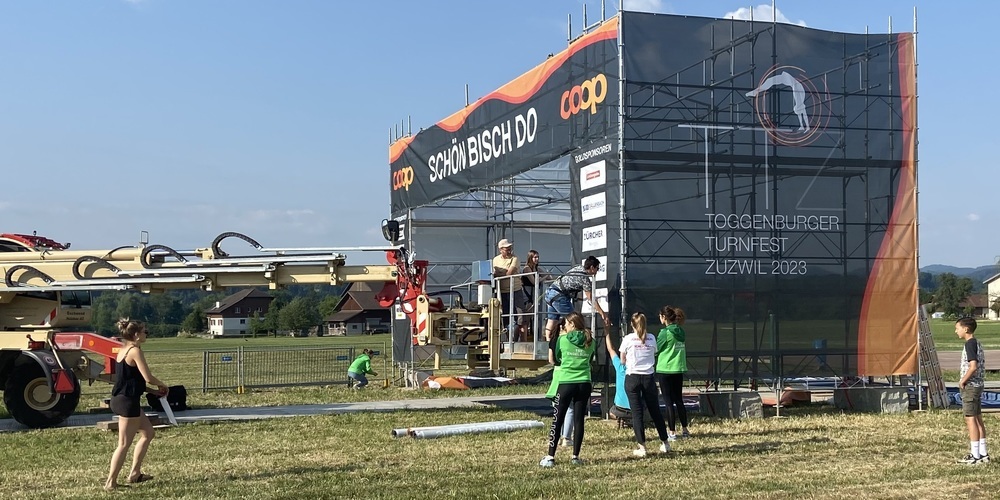Das Toggenburger Turnfest vom 23. bis 25. Juni 2023 in Zuzwil nimmt mehr und mehr Gestalt an. Drei Videoclips zeigen auf wie der Maibaum am Samstag, 17. Juni 2023, als Mittelpunkt der "Turnfest-Stadt" in Zuzwil gesetzt wurde und wie sich das Areal aus der Luft und im 360-Grad-Clip am Samstagabend präsentiert hat.