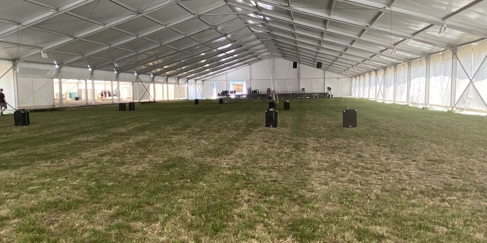 Das 75 Meter lange und 30 Meter breite Zelt bietet Platz für 3000 Personen.