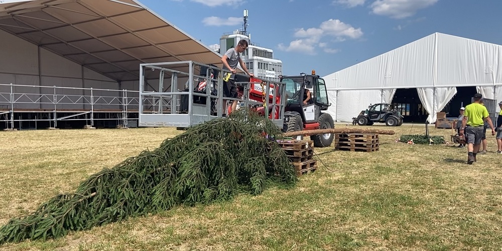 Der Maibaum steht und im Hintergrund auch die grosse Bühne für die "Stubete Gäng" und die weiteren Unterhaltungs-Highlights!