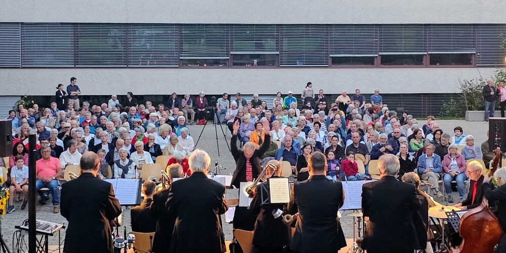 "The Black Jacket", die Ostschweizer Swing Big Band, vor dem Oberuzwiler Publikum beim Oberstufenzentrum Schützengarten.