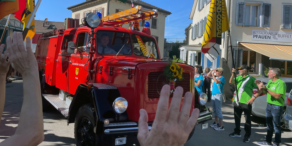 Mit dem Sieg in Therwil im Kanton Baselland hat die Gossauer Delegation den «Donnschtig Jass» nach Gossau geholt. Heute Donnerstag fand die feierliche Ankunft statt. Die letzte Sendung dieses Jahres wird am kommenden Donnerstag, 17. August vom Kirchplatz im Zentrum von Gossau ausgestrahlt. Am Montag beginnen die Aufbauarbeiten. Der Kirchplatz ist bereits ab Sonntagabend gesperrt, ab Dienstag auch der westliche Teil des Andreasparks. Von Mittwoch-Mittag 16. August bis Freitag-Mittag 18. August sind die St. Gallerstrasse und die Herisauerstrasse im Zentrum gesperrt. Der Verkehr wird umgeleitet über Ring-, Herisauer, Post-, Quellenhof- und Mooswiesstrasse.