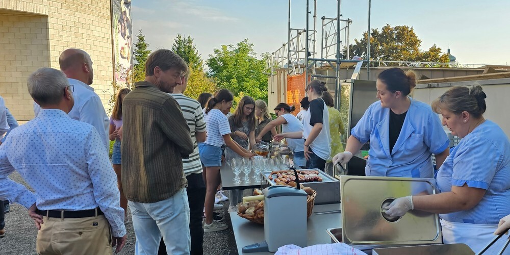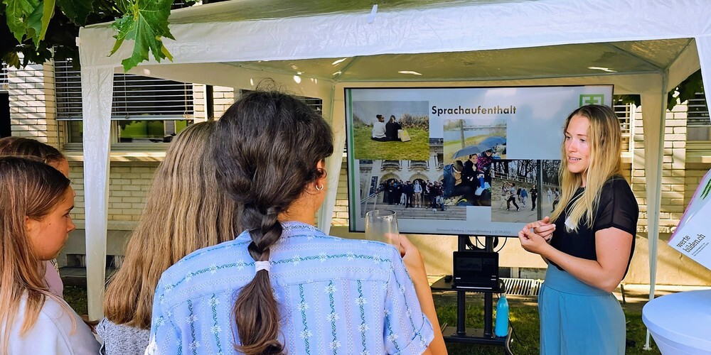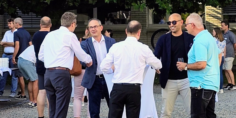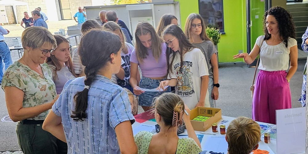 Am Abend feierte das Gymnasium Friedberg mit einem Netzwerk aus Eltern, Alumni, Partnerorganisationen und Interessierten den Meilenstein bei bestem Wetter auf dem Schulhof. Die Gäste konnten sich über das Gymnasium und sein Projekt „Nachhaltigkeit macht Schule“ informieren. Später stand Unternehmer und Politiker Marcel Walker zwei Schüler:innen auf der Bühne Rede und Antwort zum Thema Nachhaltigkeit. Beim Apero aus der Friedberg-Mensa wurde abschliessend genetzwerkt und konnten Lösli für eine Tombola erworben werden. Der Gewinn, ein E-Bike, wurde von der Landi Gossau gestiftet.