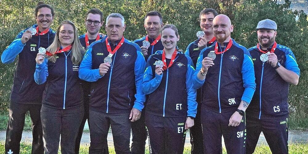 So liess sich Büren-Oberdorf nach 2019 und 2020 zum dritten Mal als Meister feiern. Die Sportschützen Gossau mit Remo Zuberbühler, Elena Tomaschett, René Bürge, Sascha Weber, Christian Alther, Joel Brüschweiler, Franziska Stark und Marcel Bürge freuten sich über die Silbermedaille.