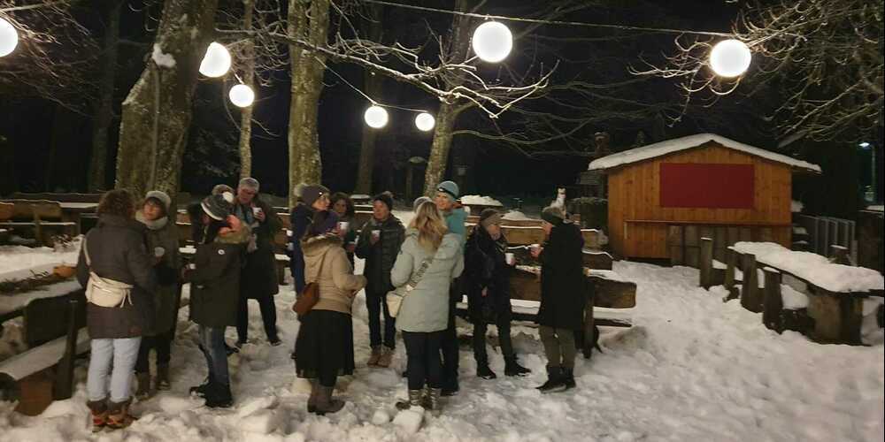 "Dank dem gefallenen Schnee und der schönen Beleuchtung ein kleiner Traum. Aber bevor es zum gemütlichen Teil des Abends überging, machten wir uns erst noch auf den Weg zu einem ¾ Stündigen Nacht- und Schneespaziergang. Zuerst ging es durch den Wald mit schneebedeckten Wegen und weiter über befestigte Strasse, bis wir einen tollen Ausblick auf den Bodensee mit seinem Lichterspiel hatten. Zurück ging es natürlich wieder durch den schneebedeckten Wald, diesmal jedoch steil hinauf. Beim Restaurant angekommen, wurden wir auch bereits mit einem leckeren Glühwein bzw. einem heissen Punsch empfangen.