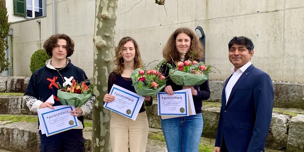 Unter Applaus der Schulgemeinschaft gratulierten Pater Kiran Gottipati und Rektor Lukas Krejčí den Preisträger:innen des Pallottipreises, der von den Pallottinern gestiftet wird.