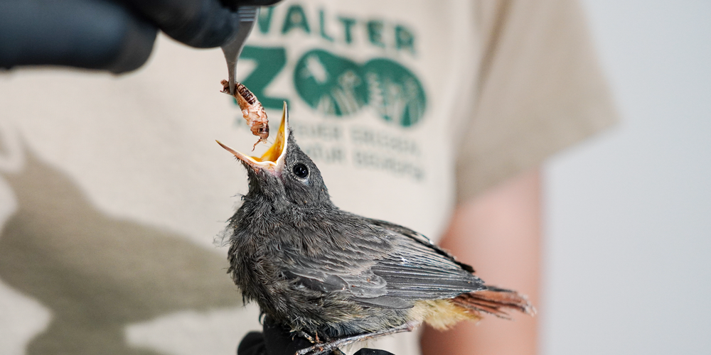 Um nachhaltig auch etwas für den Erhalt des Lebensraumes der einheimischen Wildvögel zu unternehmen, ist es wichtig, dass die Bevölkerung mit persönlichen und telefonischen Beratungsgesprächen über Massnahmen und Gefahren aufgeklärt wird. Im Jahr 2023 wurden von den Mitarbeitenden der Wildvogelpflegestation 1’868 Telefonate geführt, mehr als die Hälfte davon (60,7 %) von Mai bis Juli. In 40,8 % der Fälle wurde am Ende des Gesprächs vereinbart, dass der Vogel in die Station gebracht werden soll. Bei 28,7 % der Beratungsgespräche wurden Fragen zur Versorgung verletzter Vögel vor Ort, zum Umgang mit Jungvögeln und zu Biologie und Verhaltensweisen der einheimischen Wildvögel beantwortet, aber auch Tipps zur Lebensraumgestaltung gegeben. Ein ausführlicher Flyer, der die häufigsten Fragen beantwortet und die wichtigsten Schutzmassnahmen erläutert, wird Interessierten abgegeben und steht auf www.walterzoo.ch/wildvogelpflegestation zum Download bereit.