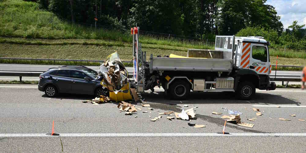 Autobahn A1 bei Niederwil: Auto fährt in Anpralldämpfer