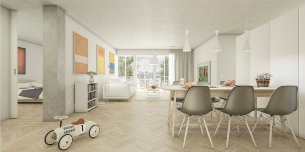 "Die 11 familienfreundlichen 3.5- bis 5.5-Zimmer-Wohnungen profitieren von der zentralen Lage und von der Nähe zum Doppelkindergarten Schulstrasse und zur Primarschule Oberuzwil. Sie überzeugen zudem mit ihrer modernen, nachhaltigen Architektur."